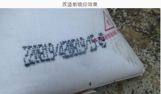 玉溪分公司粘性炸藥成品包裝袋的生產(chǎn)批號(hào)自投產(chǎn)以來(lái)一直使用大字符噴碼機(jī)進(jìn)行噴印,因大字符噴碼機(jī)使用的墨水是水性墨水,噴印后的墨水會(huì)沿著包裝袋條紋擴(kuò)散,最終導(dǎo)致噴印批號(hào)、生產(chǎn)日期數(shù)字模糊。